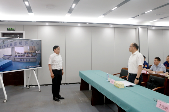 应急救援指挥部内电话铃声、汇报声一直持续不断,随着一道道命令不断下达,各小组按照职责分工,紧张有序、各司其职,全力开展应急救援。